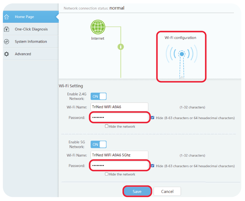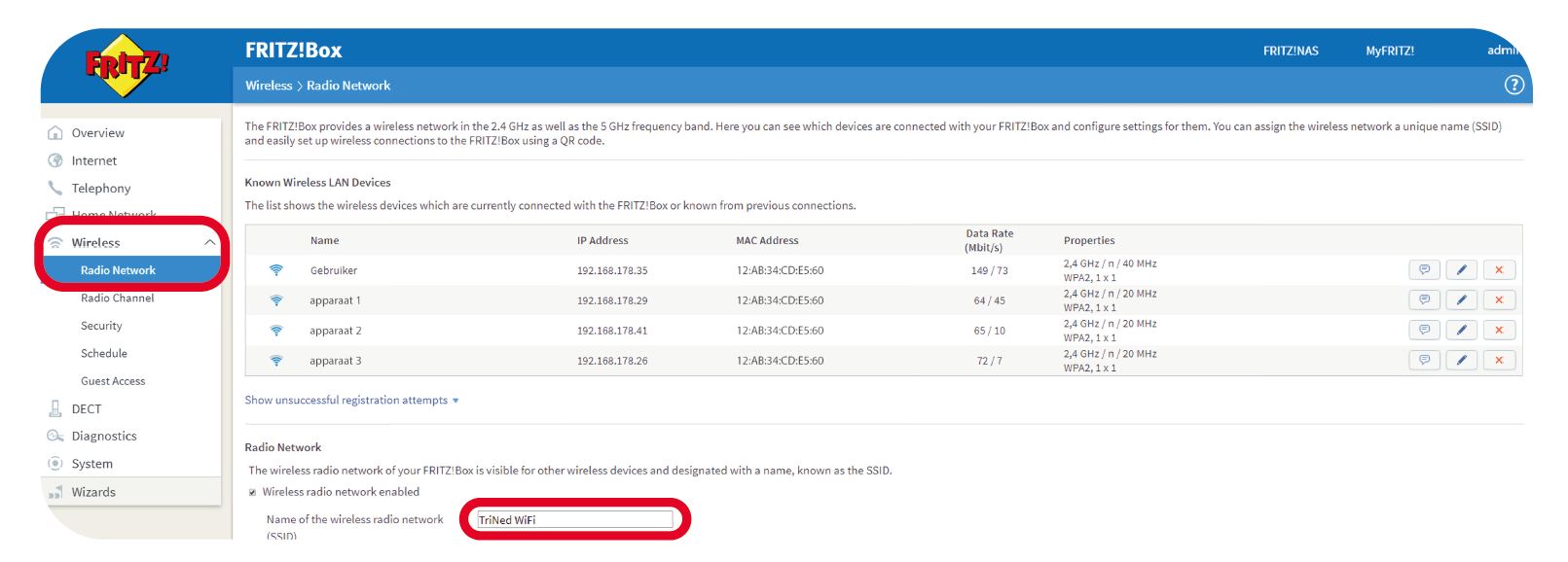 - Bij Radio Network kun je de naam van het WiFi-netwerk aanpassen.