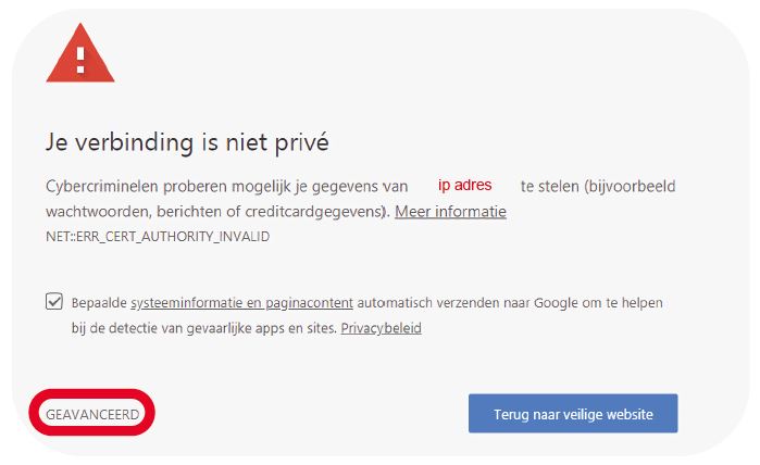 klik dan op GEAVANCEERD en daarna op Doorgaan.